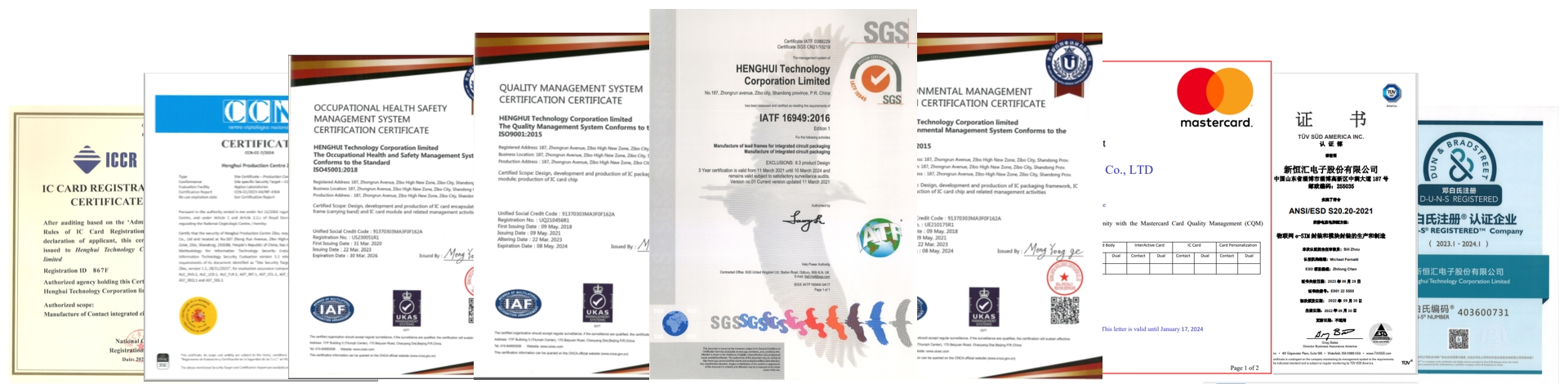 公司凭借行业领先的软硬件实力和完善质量管理体系,取得ITAF16949、CQM、ISO9001、ISO14001、ISO45001以及CC EAL6+等全球各类认证十余项,满足各行业和国际标准的同时,具备高安芯片产品加工能力和资质,以一流的产品和优质的服务,为客户持续创造价值。