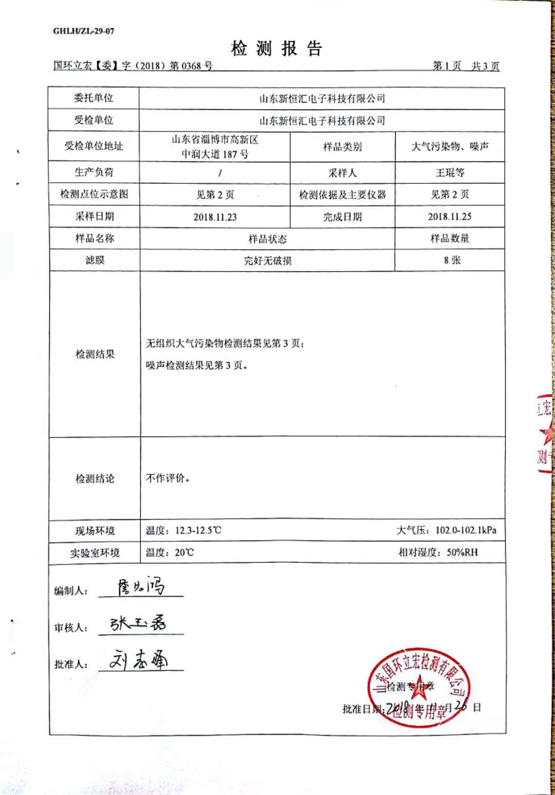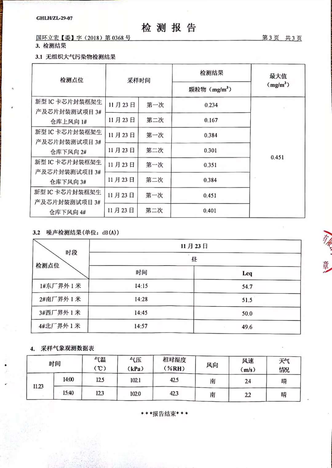 大气污染物、噪声检测--新型IC卡芯片封装框架生产及芯片封装测试项目3#仓库